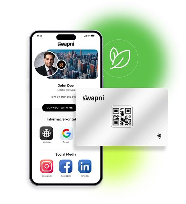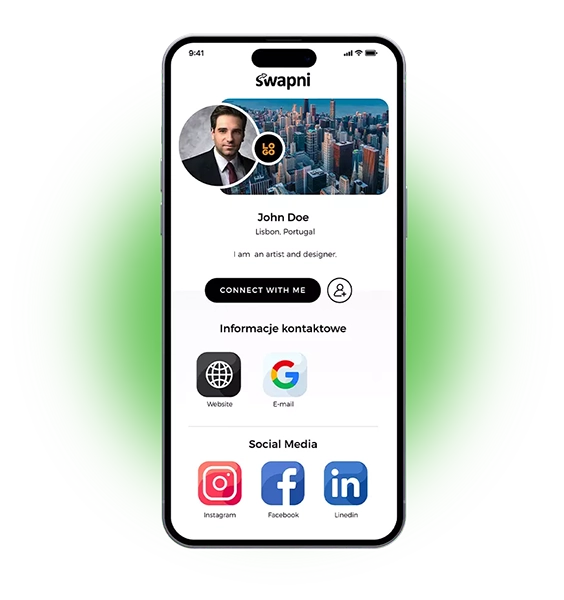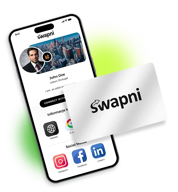 Dziel się swoimi danymi kontaktowymi jednym kliknięciem. Dorzuć do tego – zdjęcie, swoje media społecznościowe, informacje o firmie. Szybko i skutecznie. Swapni daje Ci nieograniczone możliwości.